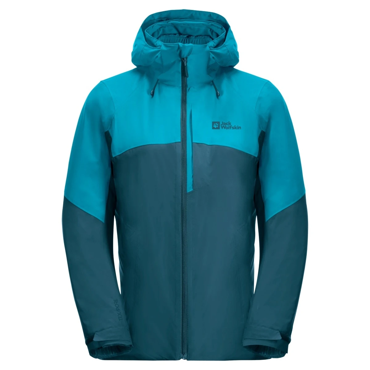 - außen besteht die sportliche Jacke aus stretchigem TEXAPORE ECOSPHERE PRO-Gewebe im Colorblocking-Stil